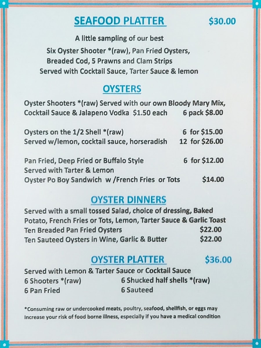 Welcome to Shucker's Oyster Bar, a hidden gem located in Lincoln City, Oregon. This casual bar offers a delightful seafood experience that engages both locals and visitors alike. The menu is highlighted by their exquisite oyster dishes, featuring ten breaded pan-fried or sautéed oysters in a rich wine, garlic, and butter sauce for just $22.00. For oyster lovers, the Oyster Platter showcases an impressive array of preparations, including their famous shooters and freshly shucked half shells.
